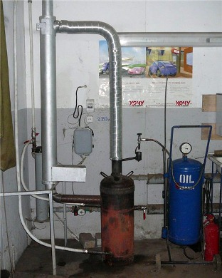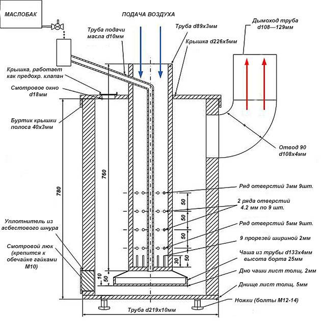 Il est possible de construire une chaudière goutte à goutte pour un système de chauffage d'eau à circulation naturelle par thermosiphon, mais dans ce cas sa conception devient plus compliquée et il devient nécessaire de forcer de l'air dans la chemise de refroidissement de la conduite de carburant. Si vous souhaitez être chauffé sans faute au gasoil ou s'il n'y a tout simplement rien de plus, alors consultez les dessins d'une chaudière de chauffage goutte à goutte avec circulation naturelle du liquide de refroidissement dans une chemise d'eau.sur la piste. riz.