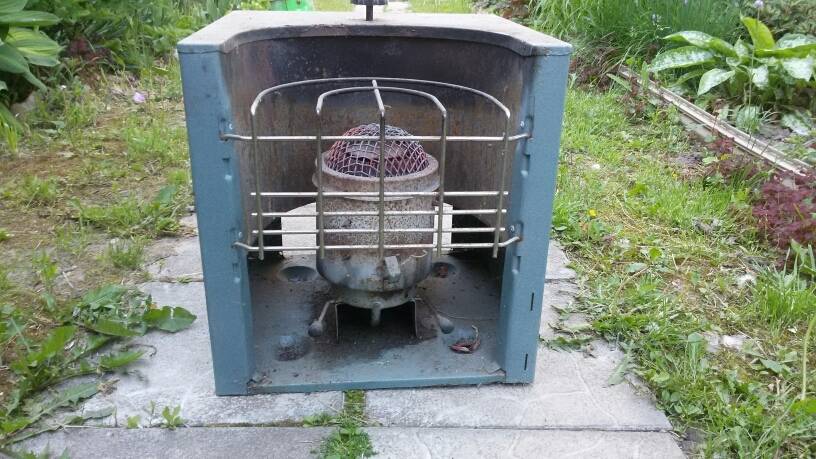 - Versez de l'essence (100 ml) sur la grille de l'élément chauffant et mettez le feu. Lorsque le feu s'éteint, l'aspiration des vapeurs du réservoir vers la surface chauffée commence. Les vapeurs commenceront à s'oxyder, augmentant la température dans la pièce.