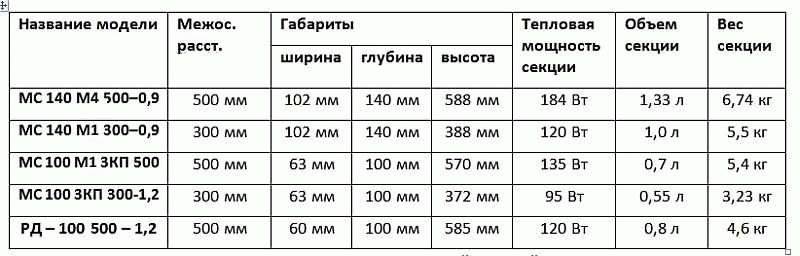 Les radiateurs en fonte de l'ancien type sont appelés "MS". Le nom est suivi d'un tiret suivi d'un chiffre. Le premier chiffre indique la profondeur des sections et le second - la distance entre elles (par exemple, MS-140M-500, MS-110-500).