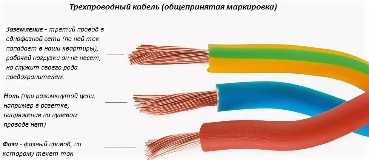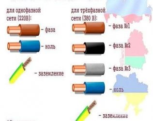 Notez que les anciens câbles produits sous l'URSS avaient une seule couleur de conducteur (généralement noir, bleu ou blanc). Afin de trouver le contact souhaité, ils devaient sonner ou appliquer une phase à chaque fil à tour de rôle, ce qui entraînait une perte de temps déraisonnable et des erreurs fréquentes (beaucoup de gens se souviennent des maisons de Khrouchtchev fraîchement construites, dans lesquelles, lorsque la cloche était enfoncée au porte d'entrée, la lumière de la salle de bain s'est allumée et lorsque l'interrupteur a été enfoncé dans la chambre, l'alimentation a été coupée dans la prise du couloir).