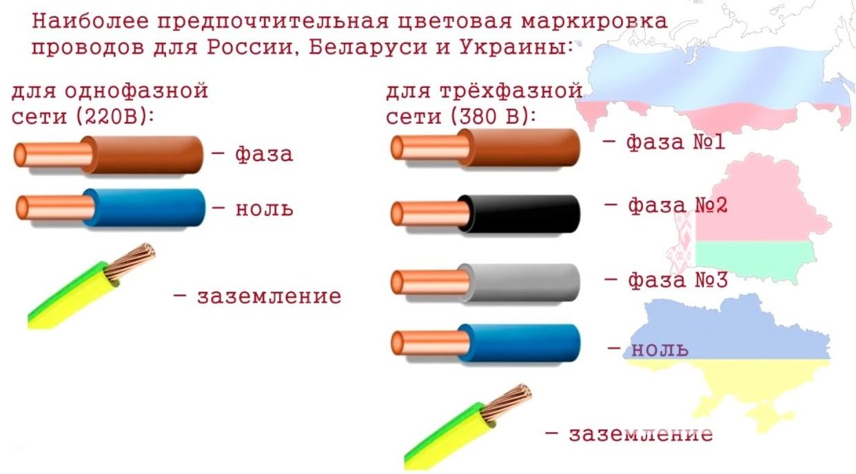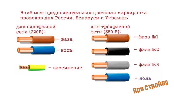 Le marquage vous permet de connecter correctement les fils, de trouver rapidement les bons contacts et de travailler en toute sécurité avec des câbles de tout type et de toute forme. Le marquage, selon le PUE, est standard, donc connaissant les principes de connexion, vous pouvez travailler dans n'importe quel pays du monde.