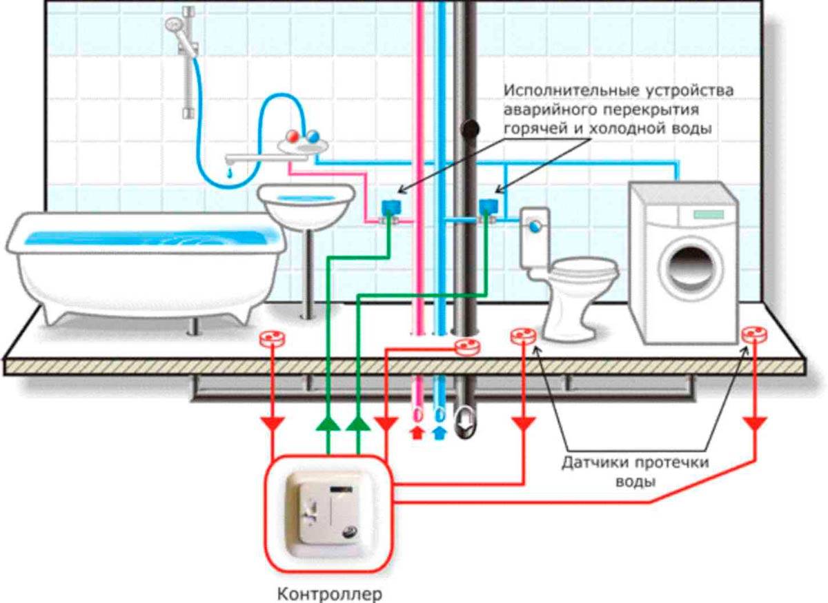 En tant que tel mécanisme, une électrovanne ou une vanne à bille à entraînement électrique est utilisée. Ils sont intégrés dans le système de plomberie immédiatement après les vannes d'alimentation en eau d'entrée.