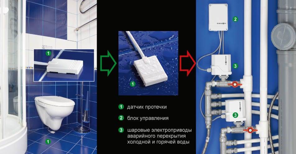 L'installation d'un capteur de fuite d'eau avec une vanne comprendra 3 étapes à la fois - l'installation de vannes électromagnétiques à bille avec un mécanisme d'obturation, des capteurs de fuite et après l'installation du contrôleur. Les vannes à bille doivent toujours être installées en aval des vannes de type entrée.
