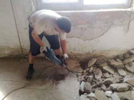 Les amateurs de travail manuel peuvent utiliser un pied de biche, un marteau, une masse, un ciseau. Vous aurez un travail lent, très bruyant, poussiéreux, mais bon marché. Quoi de mieux pour les voisins : bruyant, mais rapide ou bruyant, mais long ? Décider vous-même. Dans tous les cas, le démontage de la chape ciment-sable s'effectue par une seule méthode: casser le béton en morceaux.