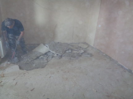 Le démontage de l'ancienne chape est un processus très laborieux. Cela nécessite des outils spéciaux et une expérience dans les travaux de réparation. Bien sûr, casser, pas construire, mais après tout, tout détruire à la suite ne sert à rien. Avec un effort supplémentaire, vous pouvez faire un trou dans le plafond, mais comment le refermer ? Et les voisins du dessous ne se contenteront pas d'un trou dans le plafond au lieu d'un beau lustre.Si vous doutez que vous ferez face à un tel travail, il est préférable d'inviter des professionnels. Laissez-les payer pour leur travail, mais vous aurez la garantie que vous ne vous blesserez ni ne blesserez les gens. Si vous avez confiance en vos capacités, nous essaierons de procéder au démantèlement par des efforts conjoints.