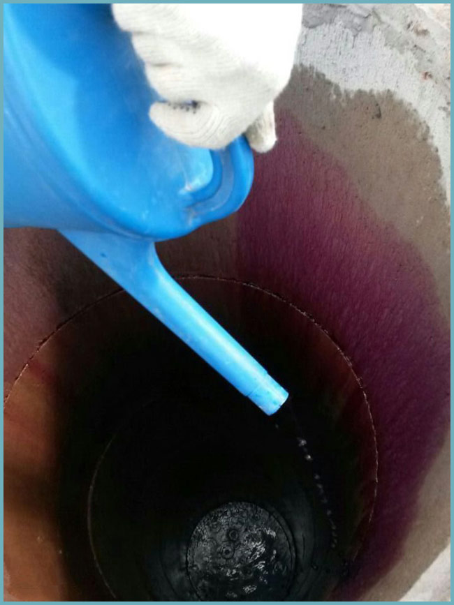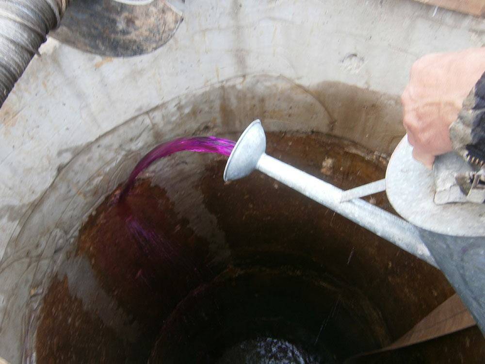 Après cela, le puits est à nouveau rempli. La solution y est introduite et mélangée. Ensuite, le liquide doit rester dans un puits bien fermé pendant 3 à 12 heures. Après cela, le contenu du puits doit être pompé jusqu'à ce que l'odeur disparaisse.