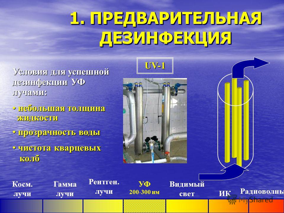Un exemple frappant de méthode combinée est l'utilisation d'une unité bactéricide compacte conçue pour désinfecter de petits volumes d'eau à domicile. Mais beaucoup plus souvent, ils utilisent une installation de désinfection de l'eau avec de la lumière ultraviolette en combinaison avec une chloration ou une ozonation. Les lampes détruisent les micro-organismes et les éléments chimiques empêchent leur réapparition.