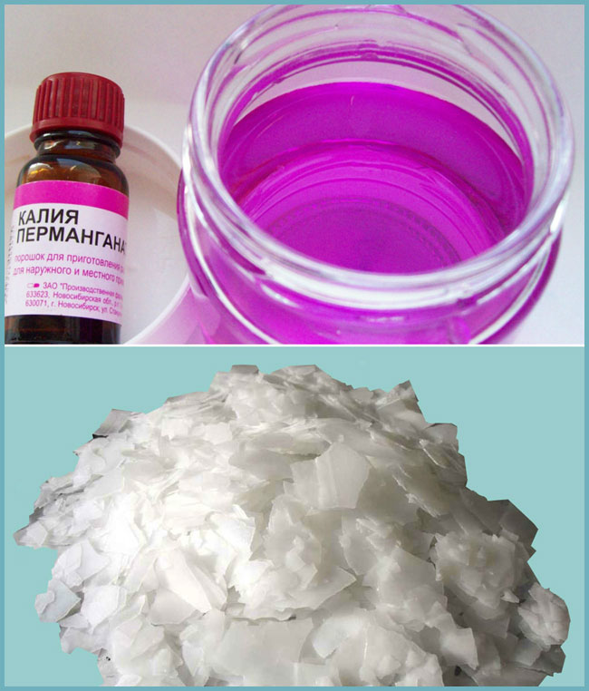 - dissoudre 1 cuillère à soupe. l. permanganate de potassium dans 10 litres. eau chaude;