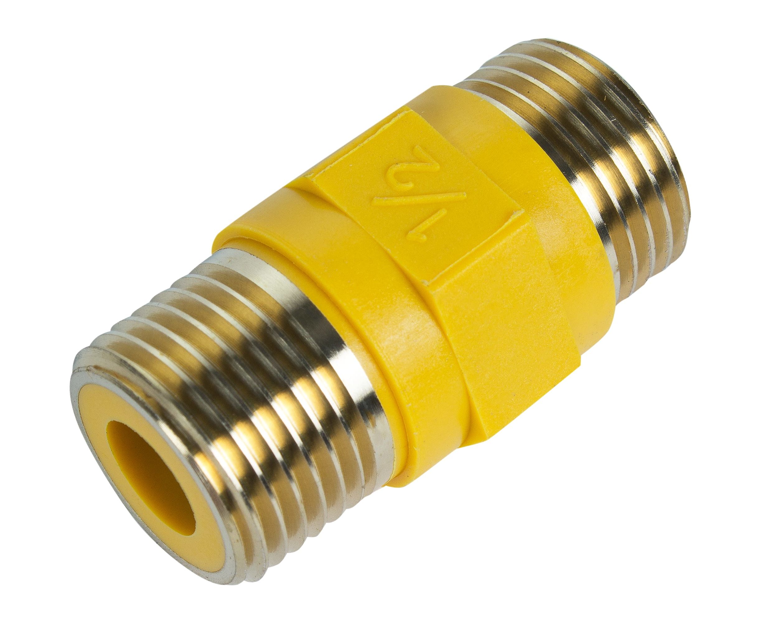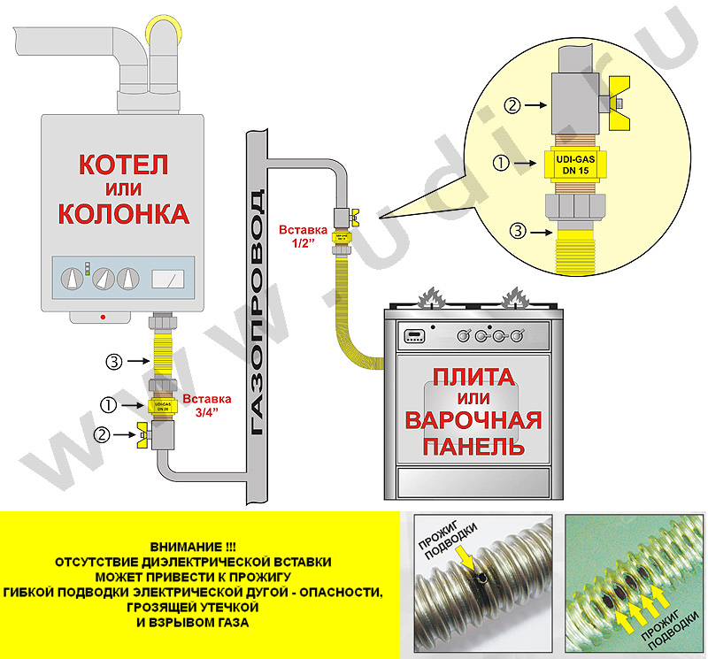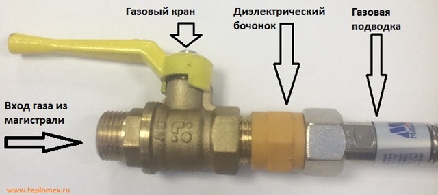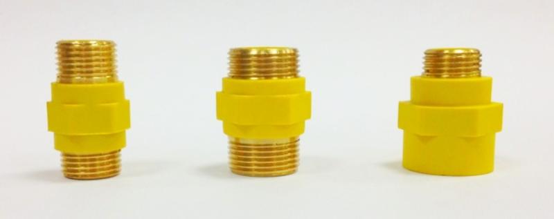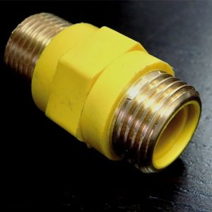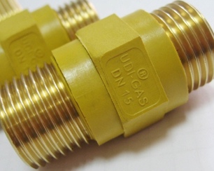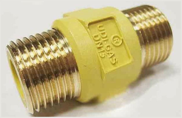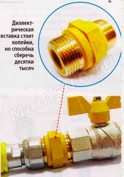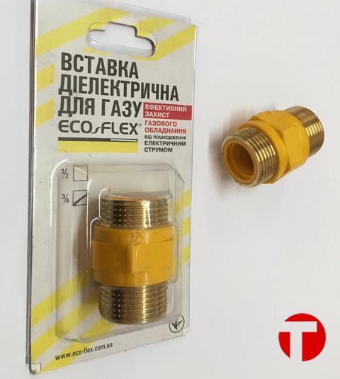 Insert diélectrique pour gaz : types de raccords gaz et conseils d'installationPour empêcher le courant de circuler à travers le tuyau de gaz à l'intérieur, des isolateurs en polyamide sont utilisés - des raccords. Pour le couplage diélectrique pour gaz, le polyamide jaune est utilisé en raison de la faible teneur en impuretés conductrices.
