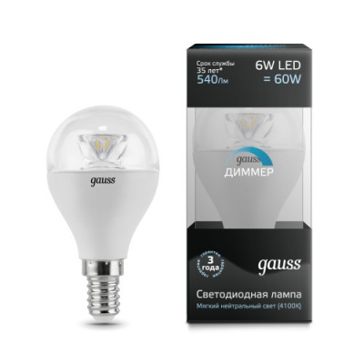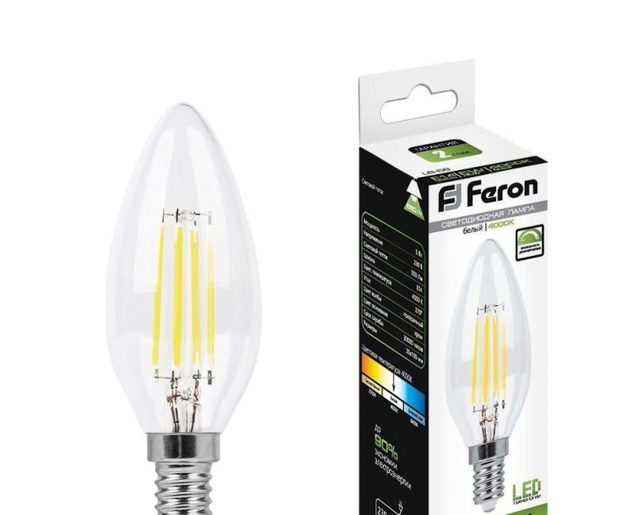 Cet échantillon diffère de tous ceux listés ci-dessus par le type de base. Ici c'est E14. Et cela donne à penser qu'il n'est pas standard, et qu'il ne convient pas à tous les appareils électriques. Soyez prudent lorsque vous décidez d'acheter ce modèle particulier. Passons à la spécification suivante. Du fait de sa puissance de 4W, la surface d'éclairage sera d'environ 1,2 m². notez également la lumière teintée chaude. Convient pour l'éclairage de petits espaces. Étant donné que l'ampoule a une finition mate, la lumière émise est agréable à percevoir et s'apparente à la lumière provenant du soleil. Le niveau de luminosité est facilement réglable avec un variateur. En termes de durée de vie, elle perd par rapport à la lampe précédente, car. ici, il est évalué à environ 15 000 heures.