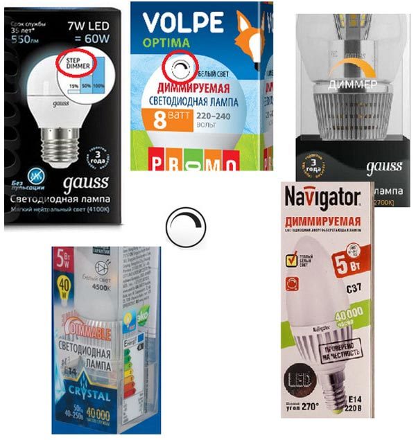 Extérieurement, il est impossible de faire la distinction entre les lampes LED conventionnelles et dimmables. Vous pouvez les distinguer par l'inscription "dimmable" ou par le logo. Des photos de diverses lampes à LED dimmables peuvent toujours être trouvées sur Internet.