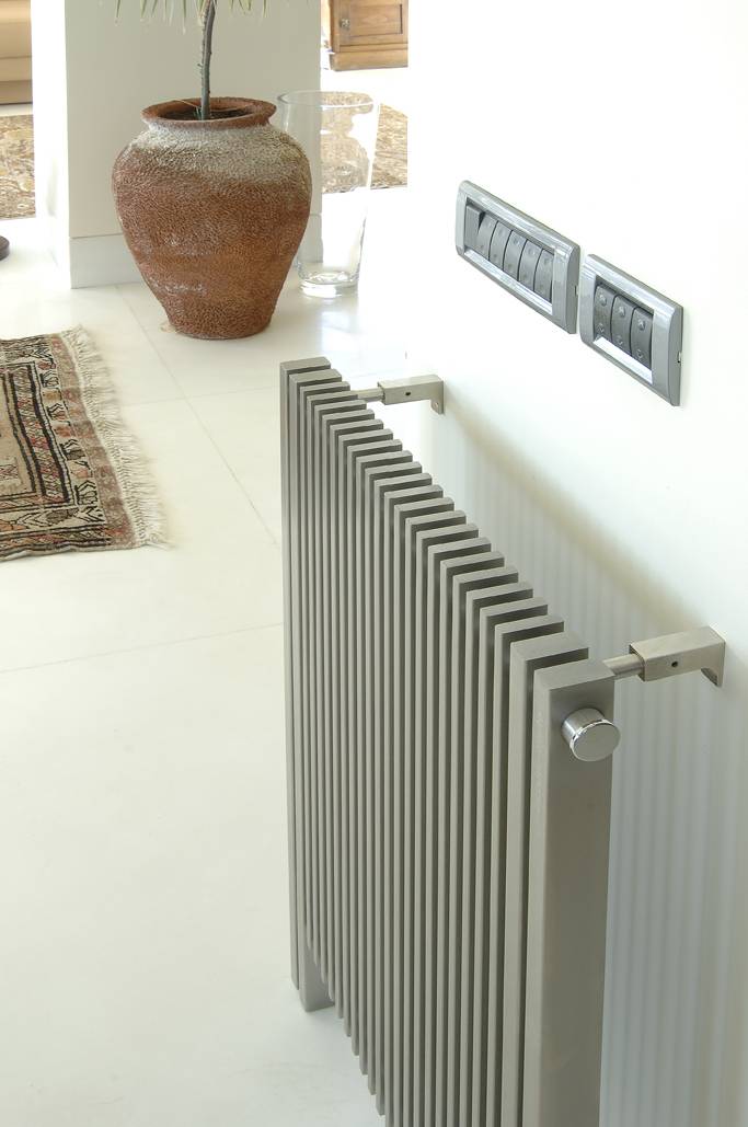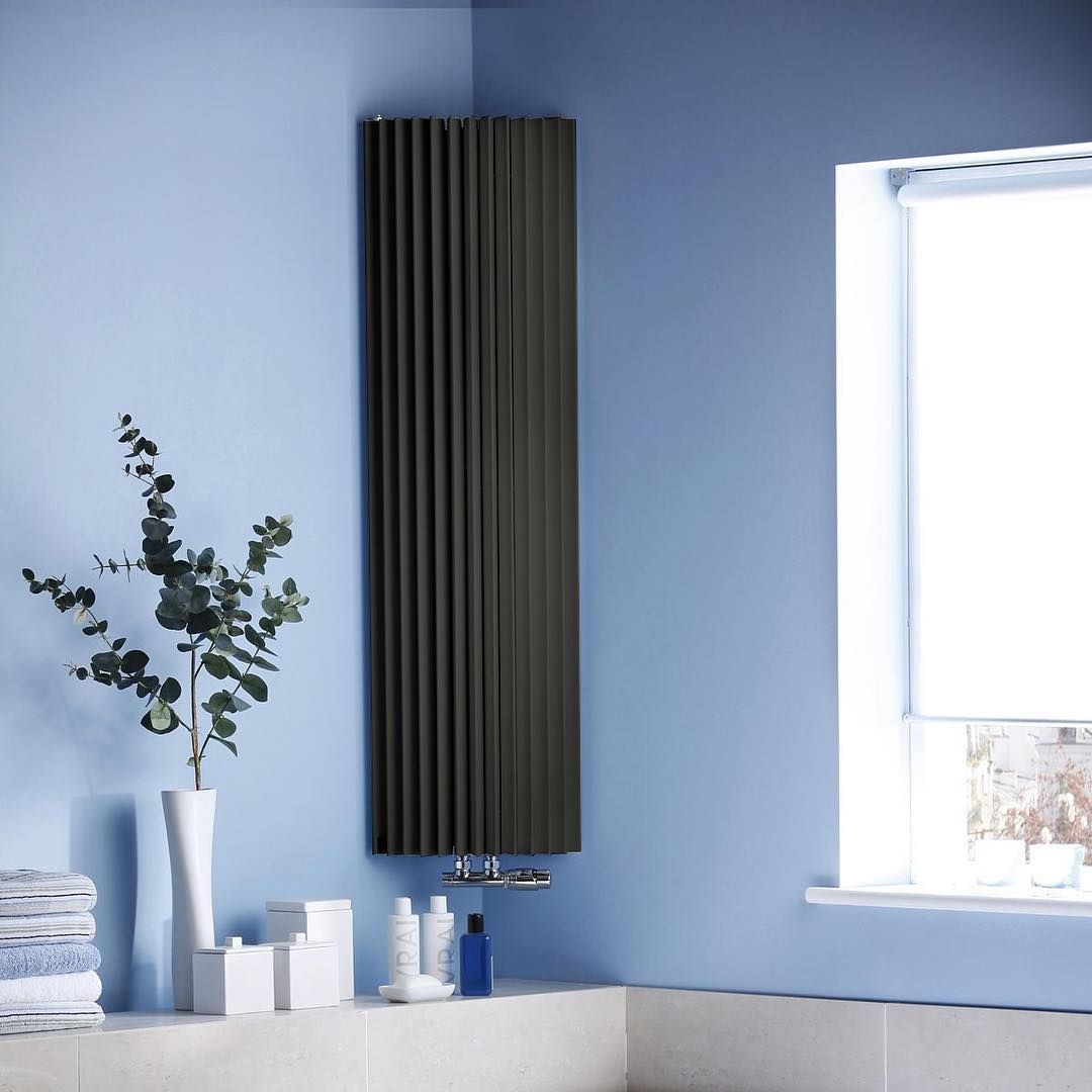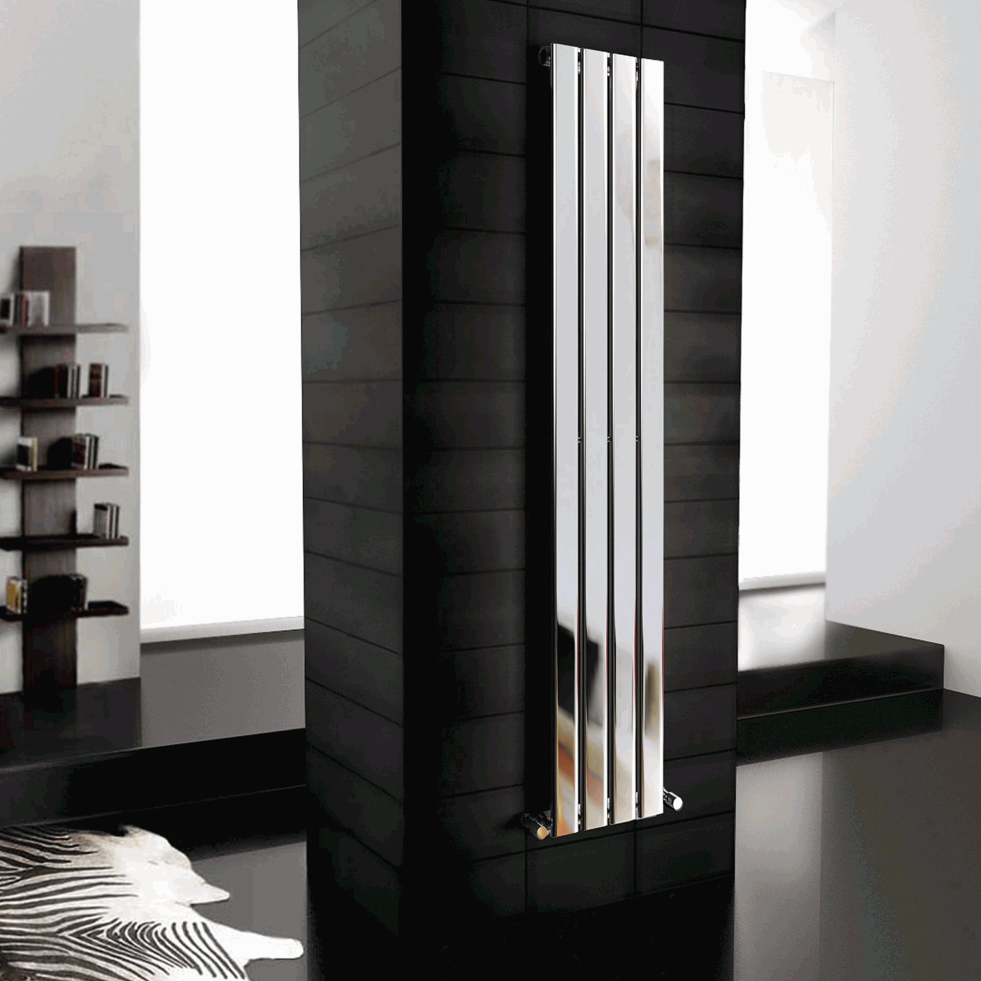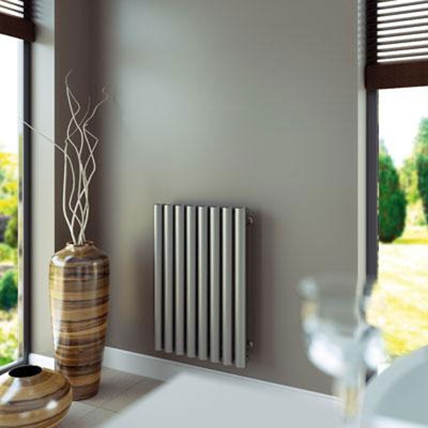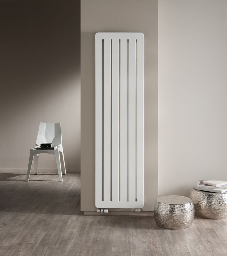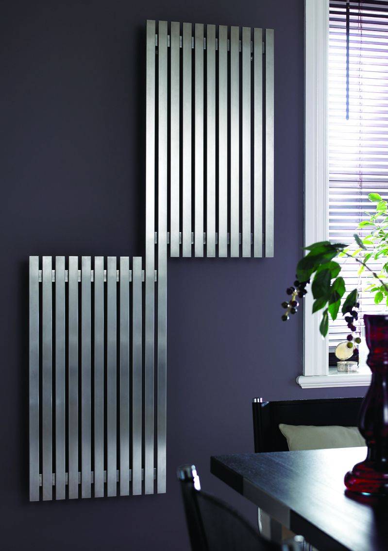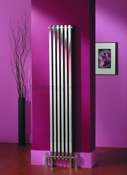 Les piles placées verticalement sur le mur rendent la pièce particulièrement élégante. De par leur conception, de tels panneaux ont une petite largeur, mais une grande hauteur. Cela permet l'utilisation de radiateurs dans des pièces avec des plafonds à partir de 2,5 mètres.