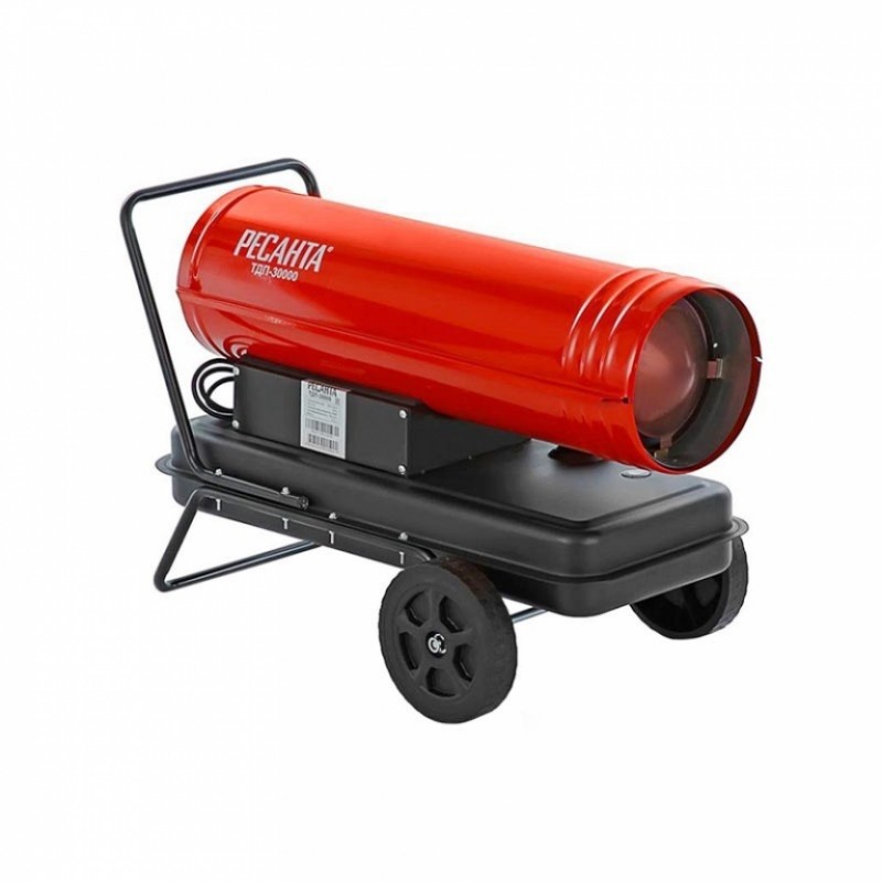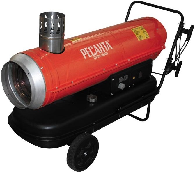 Le pistolet thermique Resanta TDPN-30000 a une capacité de 800 mètres cubes. m/h à une puissance thermique de 30 kW. Réservoir de carburant diesel - 50 litres. À un débit de 2,4 kg/heure, cela suffit pour 15 heures de fonctionnement continu.