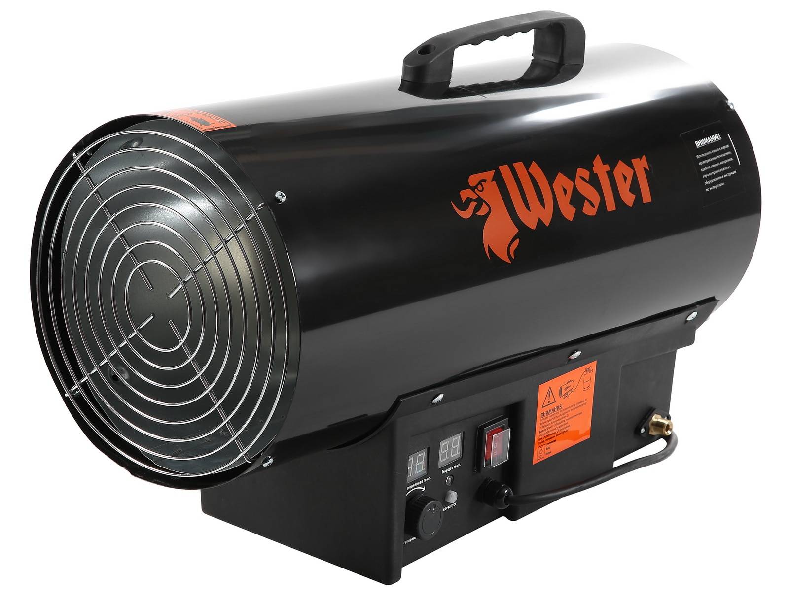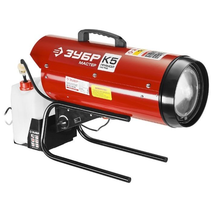 Cadre. Un autre modèle du même fabricant est un ensemble d'un réservoir de carburant d'une capacité de 24 litres, avec un bloc d'alimentation d'une puissance thermique de 20 000 W, monté sur un support fixe avec une poignée.Il pèse un peu plus de 22 kg et a des dimensions de 900x470x540 mm. Toutes les pièces en acier sont peintes. Pour éviter les brûlures en cas de contact accidentel, un petit espace est ménagé entre la buse et la paroi extérieure.