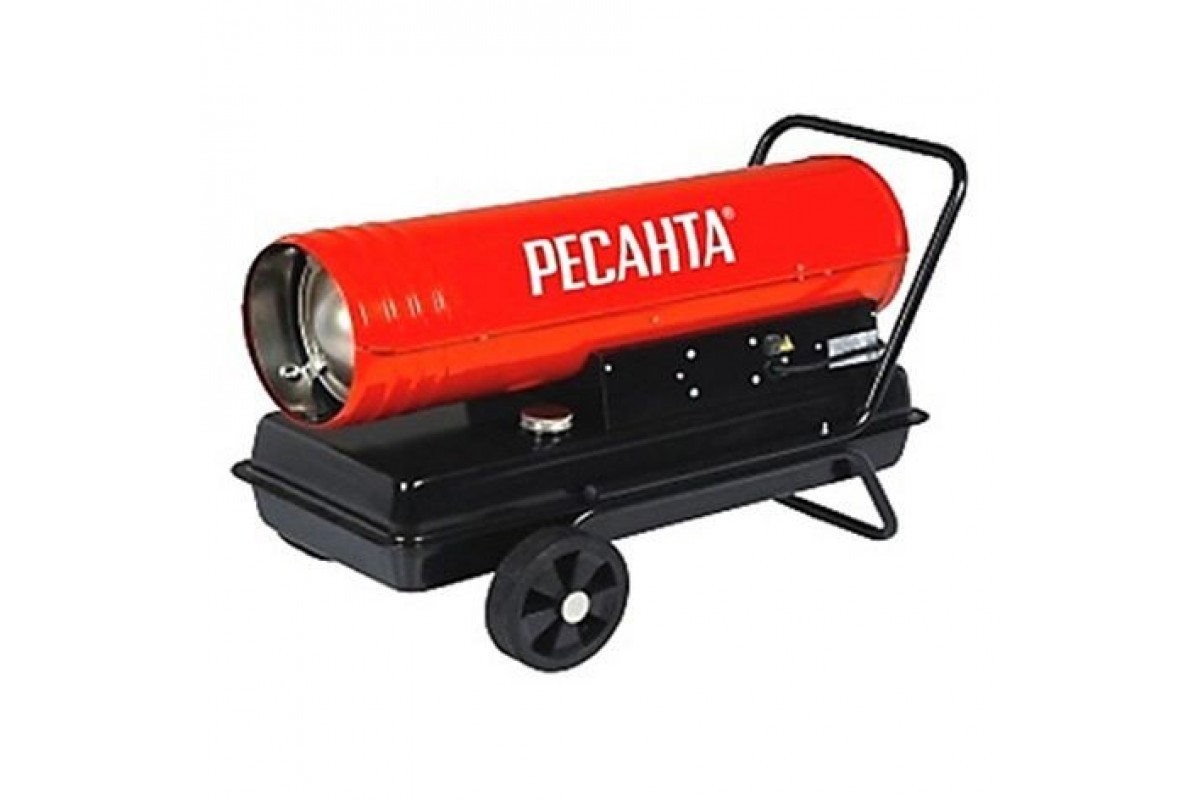 Il s'agit du dernier modèle de Resanta, fabriqué selon le schéma à combustion directe du carburant. Il est indispensable pour chauffer les entrepôts et les locaux techniques, les ateliers de production, les ateliers de garage. Un décapeur thermique convient également au chauffage des serres. Le constructeur l'a équipé d'un réservoir de carburant impressionnant pour 56 litres de carburant diesel, la consommation de carburant ne dépasse pas 4 kg / h. La durée de travail d'un réservoir entièrement rempli est de 14 heures. La performance de l'unité est de 1100 mètres cubes. m/heure. Le pistolet thermique de Resanta nécessite une prise électrique pour fonctionner.