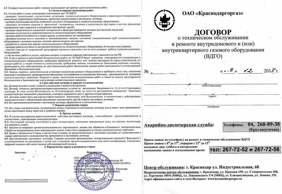 Le contrat indique la liste des travaux et activités que les spécialistes de l'entrepreneur sont tenus d'exécuter. Des travaux techniques supplémentaires peuvent être facturés séparément. L'abonné devra également acheter des pièces à ses frais - par exemple, si une colonne tombe en panne ou si des pièces d'un poêle sont remplacées.