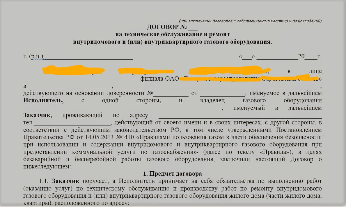 Les propriétaires et propriétaires de chalets, maisons de ville, duplex sont tenus de conclure un accord pour l'entretien des équipements à gaz dans une maison privée. L'entrepreneur (exécuteur testamentaire) remplit les conditions de la transaction.