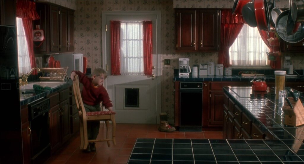 La cuisine est le cœur de la maison, c'est donc ici que se sont déroulés les rebondissements les plus importants de l'intrigue du film.Vous souvenez-vous de la drôle de visite de livraison de pizza ? Et qu'en est-il du « coup » historique dans l'œil d'un voleur béant ? Ces moments sont fermement entrés dans l'histoire des films comiques de tous les temps en tant qu'exemples de manuels.