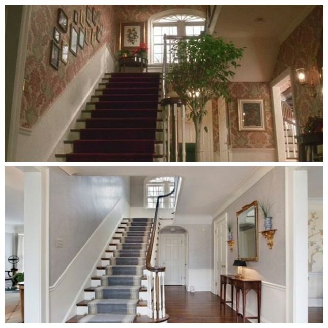 Le reste des chambres est devenu plus spacieux et concis. Ils ont moins de tapis et de meubles, pas d'attirail de Noël, et les tons de la décoration sont calmes et raffinés. L'escalier, par exemple, a perdu son tapis de fête bordeaux et une grande fleur en pot.Ils ont été remplacés par un léger revêtement nacré et un grand miroir.