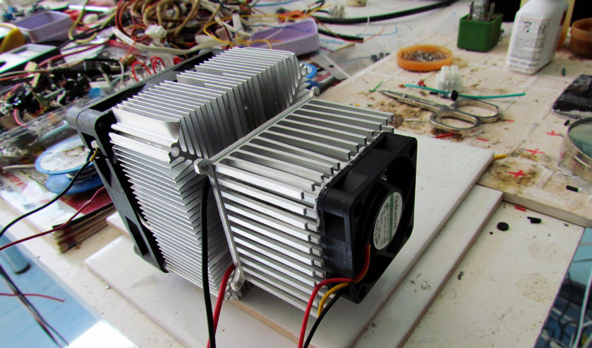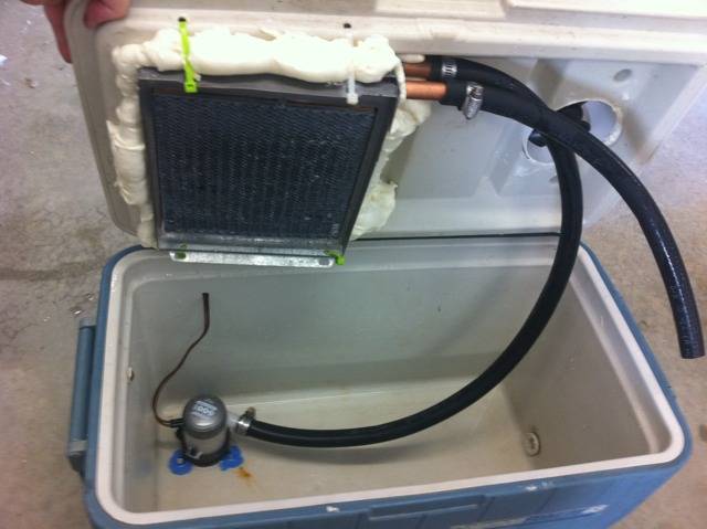 Le refroidisseur doit être monté de manière à ce que la masse d'air ait une sortie de l'extérieur. À l'aide d'un cordon, le câble est attaché au refroidisseur, et maintenant l'ensemble du système dans son ensemble est attaché à l'unité centrale.