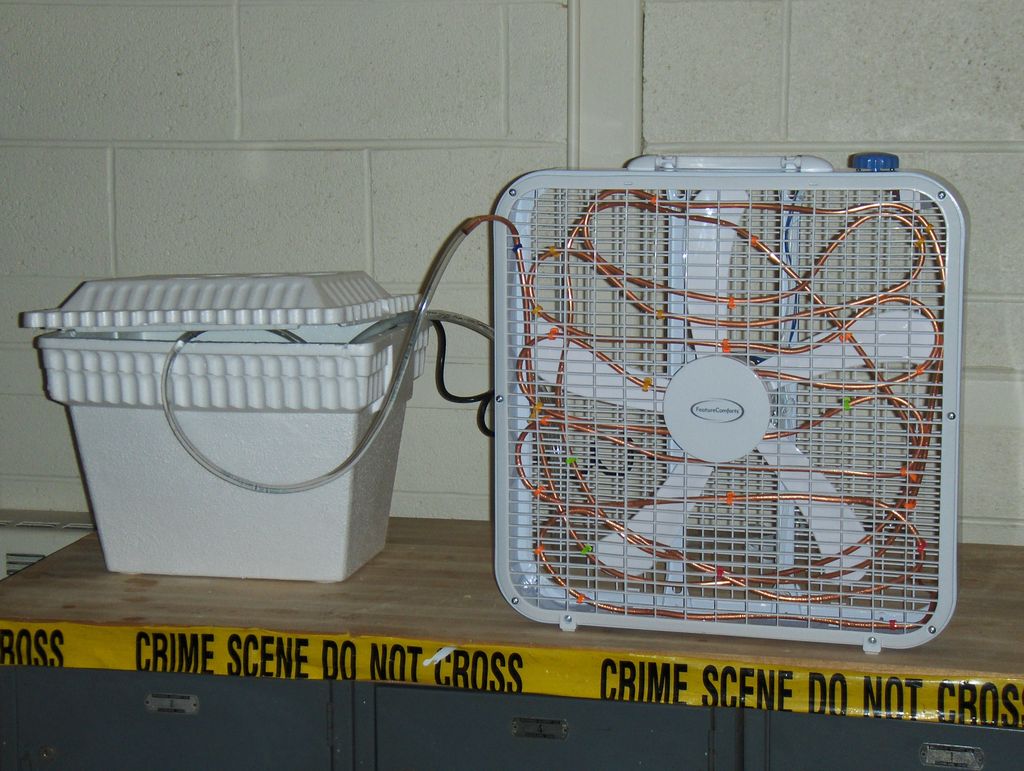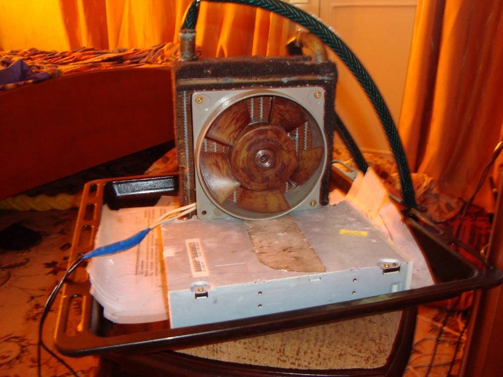- La prochaine étape est l'installation des ventilateurs. Le premier soufflera le compresseur, le second soufflera la fraîcheur.