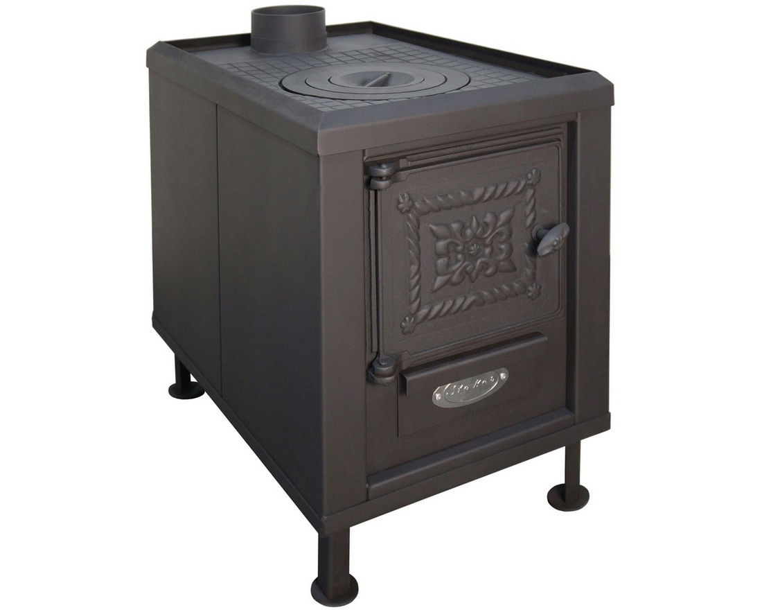Les modèles modernes sont faciles à utiliser. Ils sont économiques. Différence dans la longue durée de vie. S'allume facilement et réchauffe rapidement la pièce. Certains poêles, cheminées pour chalets d'été, à bois, sont universels : ils sont équipés de plaques de cuisson.