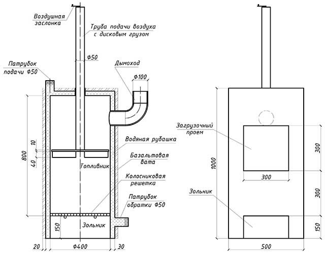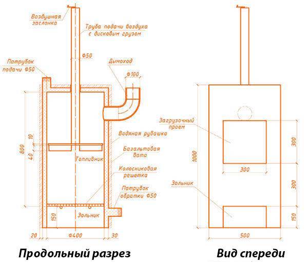 Poêle à combustion longue à faire soi-même: schéma et instructions étape par étape