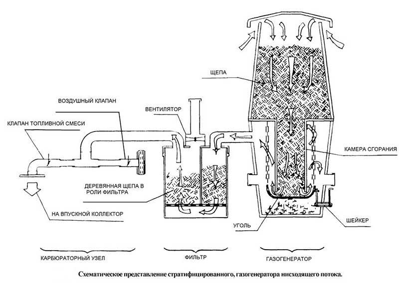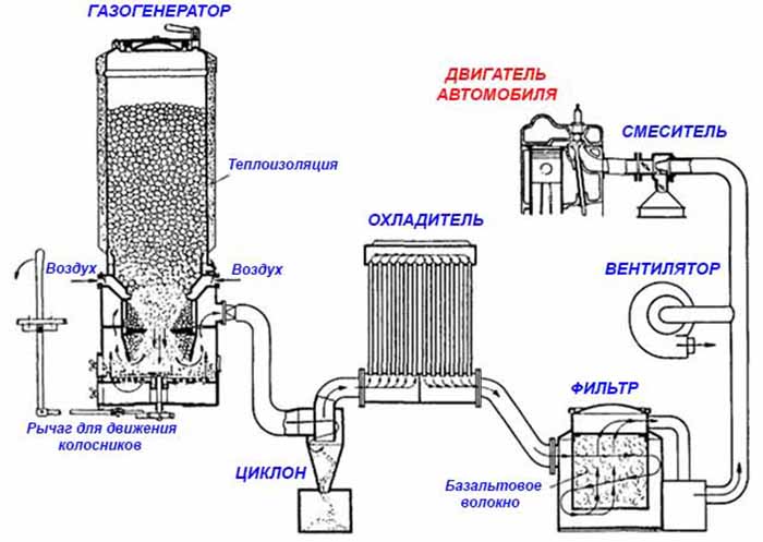 À l'époque soviétique, les générateurs de gaz étaient même utilisés pour faire fonctionner les camions, le gaz produit est suffisant pour faire fonctionner un moteur à combustion interne