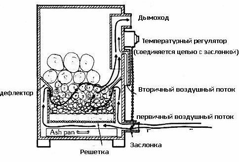 Par exemple, il est possible d'installer un mécanisme d'alimentation forcée en combustible solide à partir d'un bunker, qui, soit dit en passant, sera également alimenté par un générateur, ainsi que divers dispositifs de contrôle.