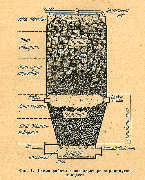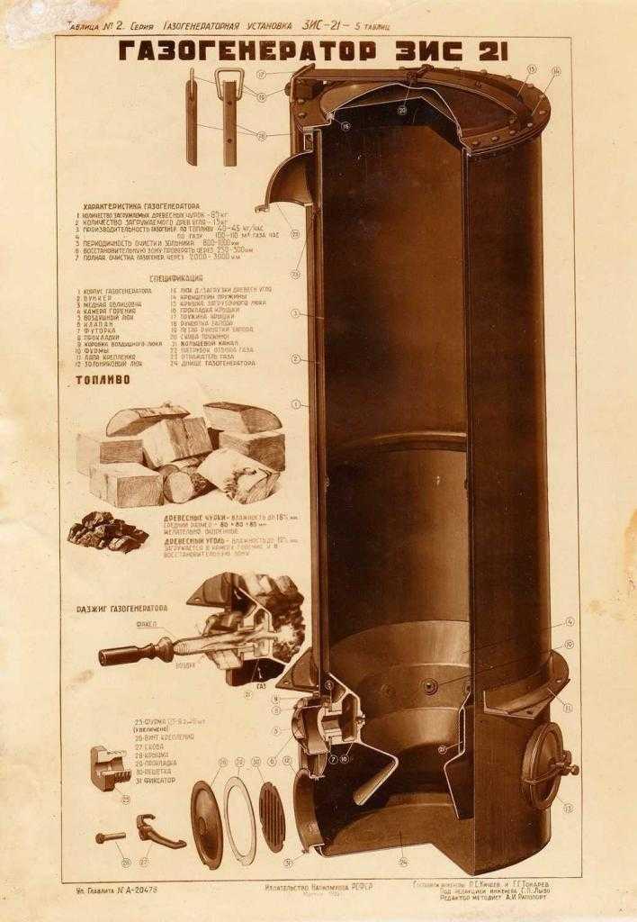 À cette époque, le bois de chauffage était plus abordable que les produits pétroliers. Par conséquent, les équipements soviétiques et étrangers étaient équipés de générateurs de gaz. Sur gaz de bois travaillé : citernes, voitures et véhicules automobiles.