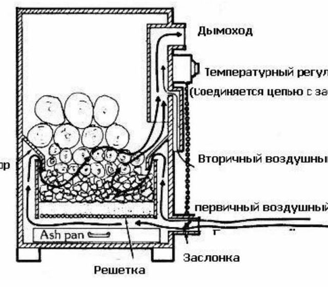 De plus, selon le combustible utilisé dans la pyrolyse, de l'eau sous forme de vapeur, d'oxygène, de dioxyde de carbone et d'azote leur est ajoutée en diverses quantités. Les chaudières de chauffage à pyrolyse fonctionnent également selon le principe décrit, démontrant un rendement élevé.