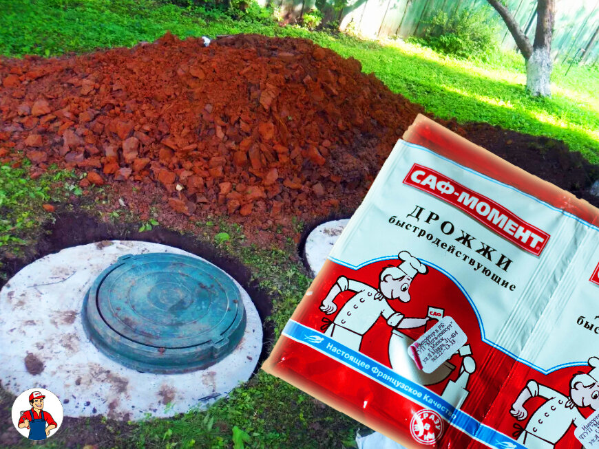 ATTENTION! Un envieux habite ici, il nous a conseillé de jeter de la levure dans la fosse. Si tout à coup vous en avez entendu parler par quelqu'un, n'essayez pas d'en faire autant ! Aucune bactérie ne détruira la levure, mais le contenu de la fosse, surtout à la chaleur, sera forcé de fermenter