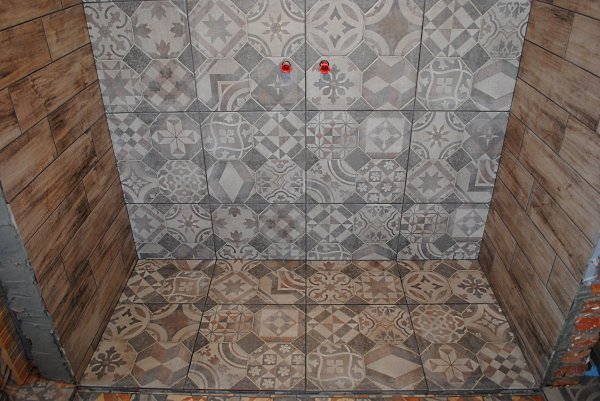 La finition des surfaces de la cabine de douche est réalisée selon une technologie unique de pose de carreaux en terre cuite. En règle générale, des carreaux de tailles moyennes et petites sont utilisés à ces fins, de bons résultats sont obtenus lors du revêtement de mosaïques.