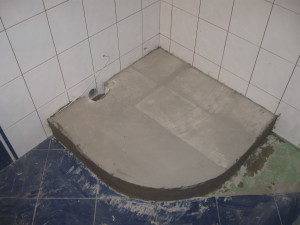 - La partie intérieure du fond est coulée avec un mélange de béton autonivelant. Sa couche est de 6 à 8 cm, ce qui crée une pente vers le trou de drainage pour que l'eau sorte.