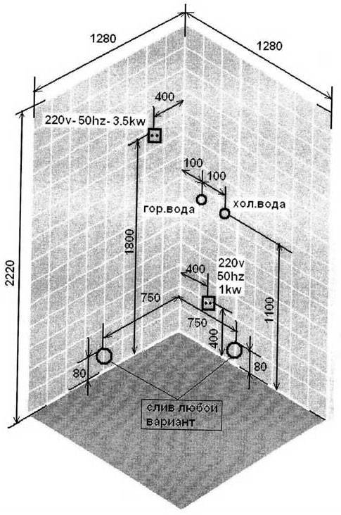 - L'installation de la cabine de douche elle-même est relativement simple. Plus difficile est la préparation des communications. Le problème est que dans une maison particulière, les douches sont installées près d'un mur ou dans un coin, c'est-à-dire à deux murs. Par conséquent, il y a des difficultés avec la conduite des égouts et des conduites d'eau. Ce problème peut être résolu de deux manières. Tout d'abord, il est possible de couper la palette aux endroits où sont posés les tuyaux, mais parfois une palette basse ne le permet pas. Deuxièmement, des tuyaux peuvent être posés dans le mur lui-même, mais cela fait l'objet de réparations majeures dans le local sanitaire.