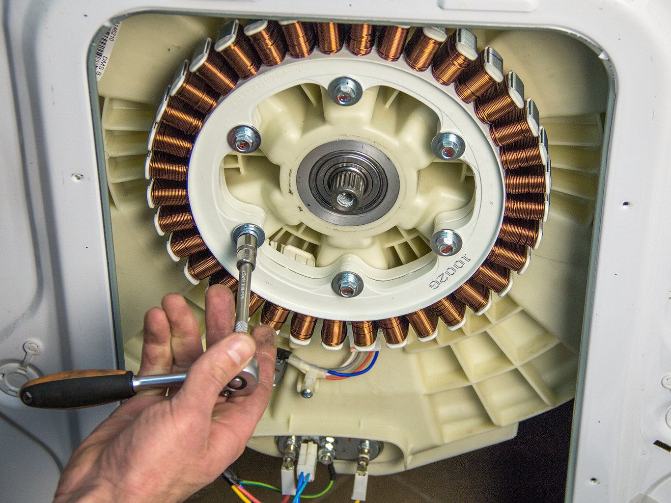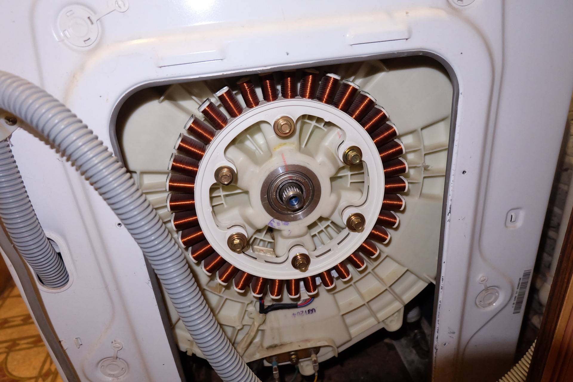 Quant au mécanisme interne, plusieurs pièces distinctes sont dissimulées sous le corps : un rotor, un stator et deux balais électriques. Le tachymètre situé sur le dessus contrôle la vitesse en tours. Les experts utilisent plusieurs méthodes pour vérifier les performances du moteur. Mais vous devez d'abord le sortir de la machine à laver.