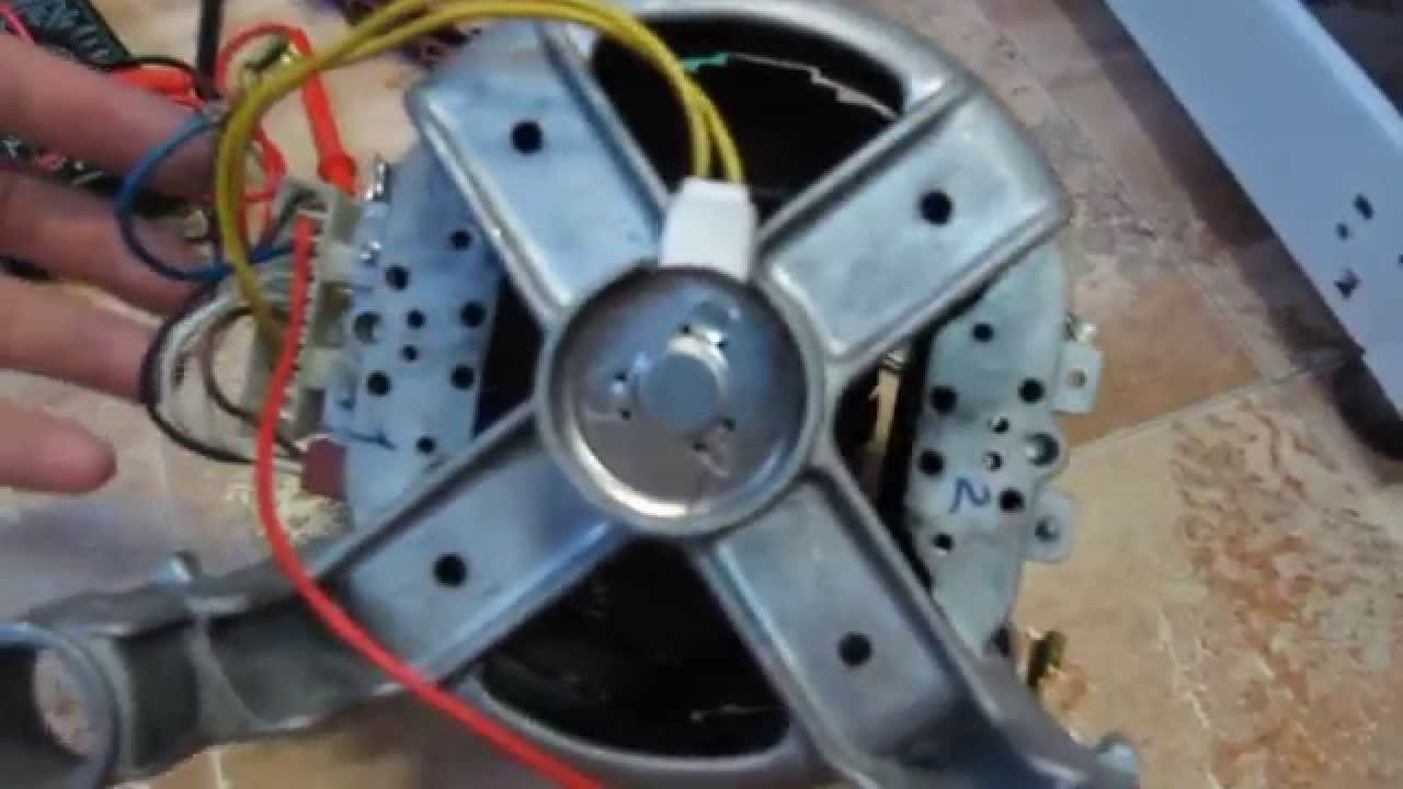 - La première méthode de test consiste à mettre sous tension les bobinages du démarreur et du rotor du moteur, après avoir préalablement connecté tour à tour ces éléments. L'inconvénient de cette méthode est qu'elle ne garantit pas un résultat à 100%, car même si le moteur tourne sous tension, cela ne signifie pas qu'il fonctionnera correctement sous différents modes de fonctionnement de la machine à laver.