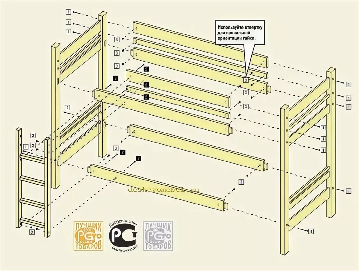 - faire un lit superposé de vos propres mains est possible avec un minimum de compétences en menuiserie.
