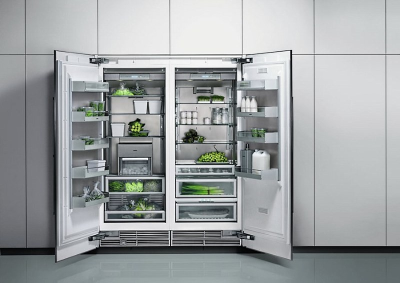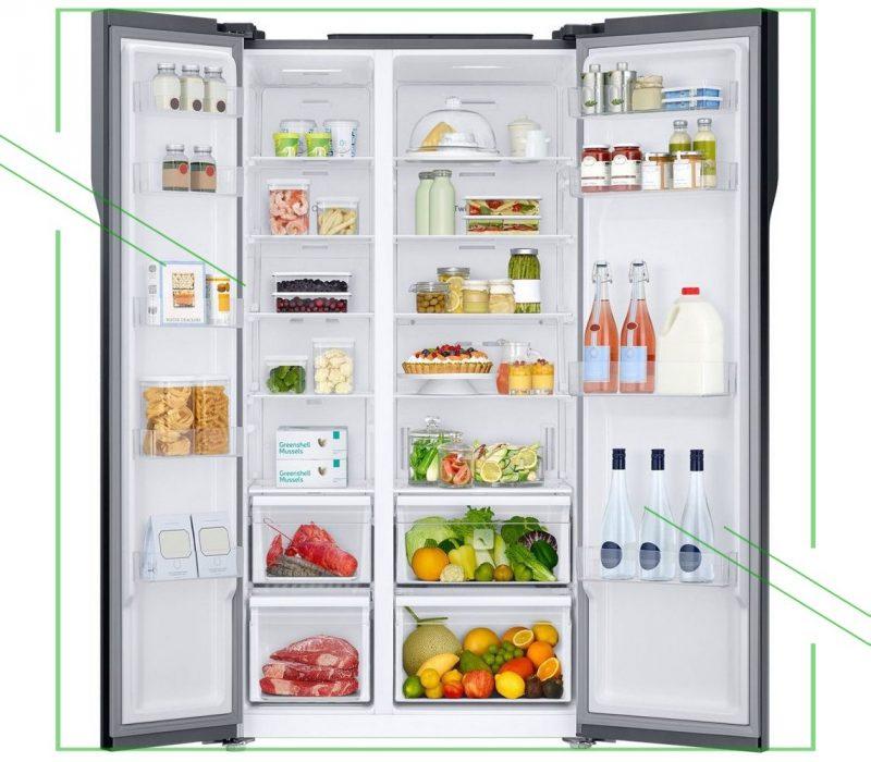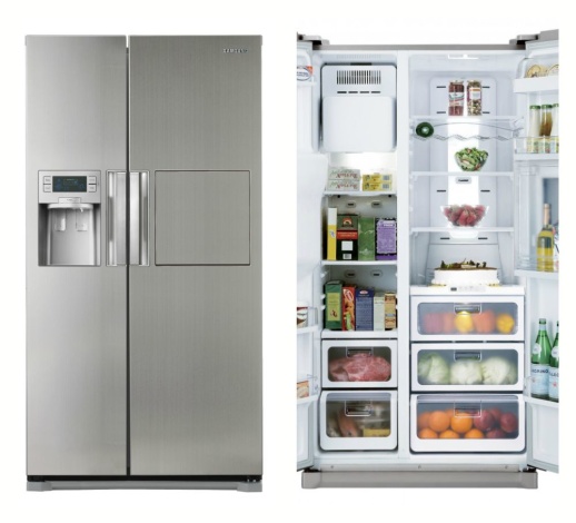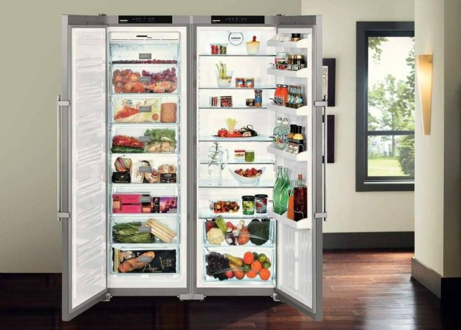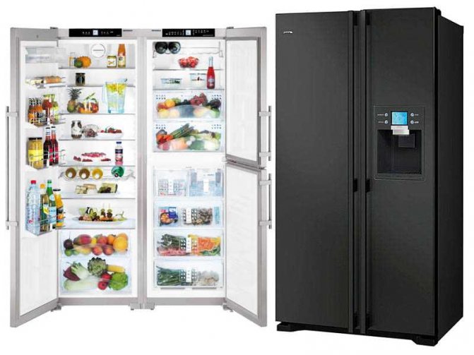 Les chambres de réfrigération et de congélation sont situées côte à côte: la première est généralement à droite et la seconde à gauche.Cette disposition est plus pratique que dans les modèles traditionnels, lorsque les compartiments sont placés les uns sur les autres.
