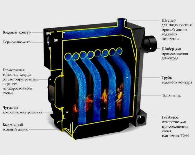 Sa principale caractéristique est que dans la conception, parmi les nombreux éléments, seuls 2 tubes sont prévus : un pour l'entrée de liquide froid, l'autre pour la sortie de celui déjà chauffé. La composition comprend également 1 échangeur de chaleur, qui est naturel, un brûleur et une pompe qui pompe le liquide de refroidissement - en cas de circulation naturelle, ce dernier peut être absent.