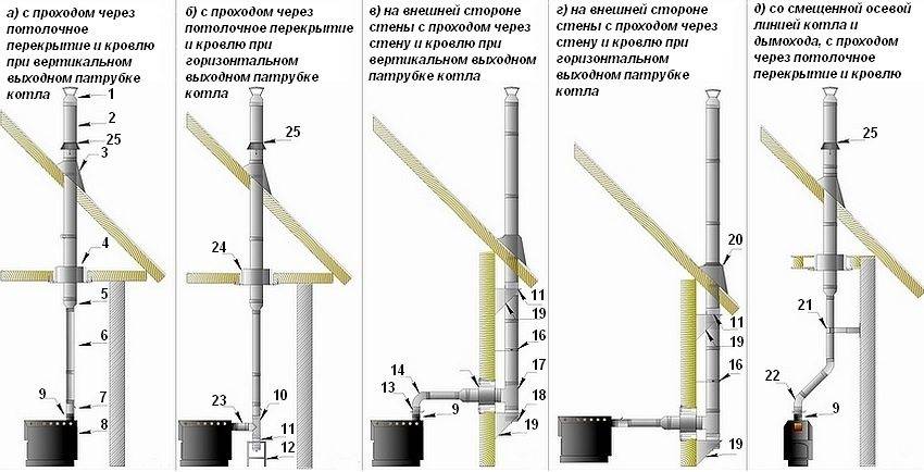 Le réglage dépend du type de directions de conduit nécessaires à la combustion du combustible. À l'intérieur de la pièce, il existe plusieurs types de directions pour le canal de cheminée: