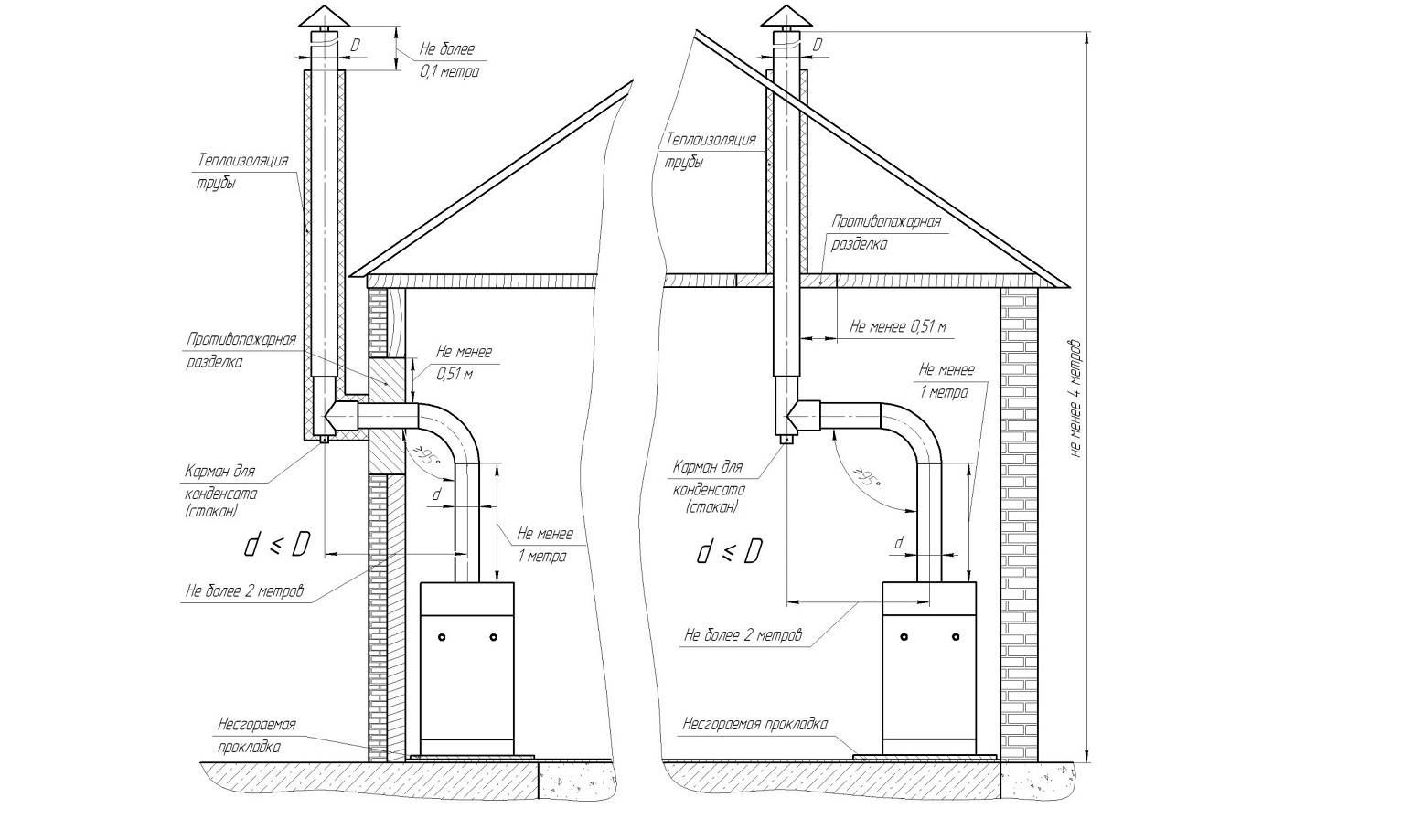 - Conditions de disposition des canaux de fumée pour les chaudières à gaz conformément au SNiP