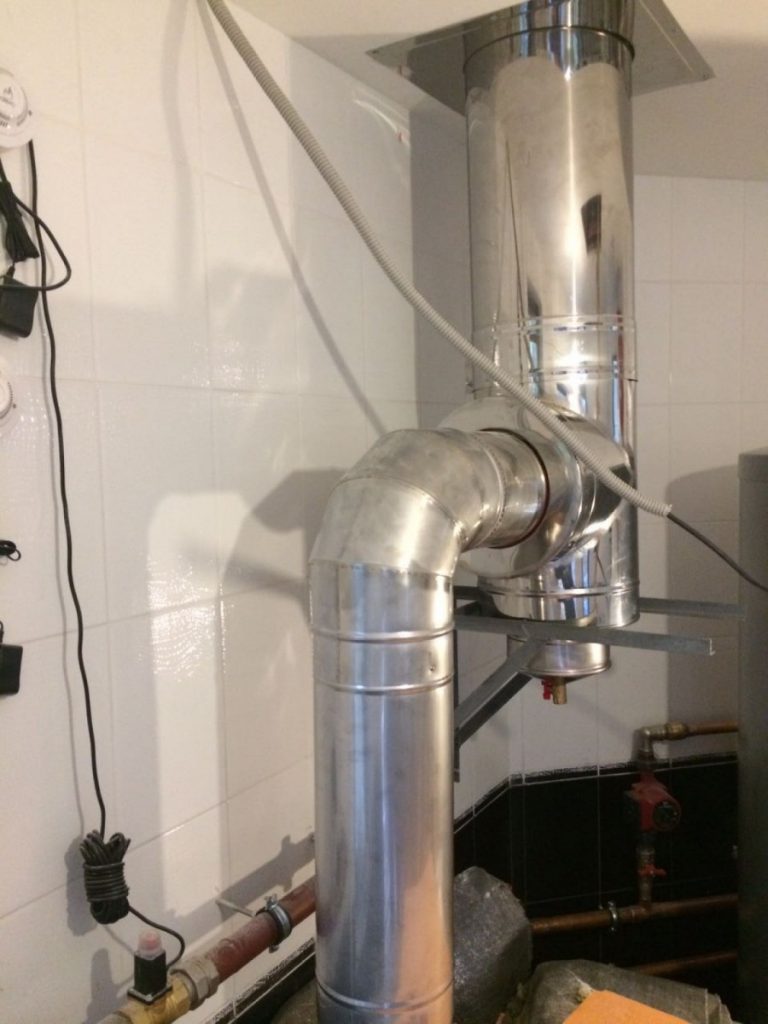 Les cheminées d'une chaudière à gaz sont installées dans le sens de la structure de bas en haut, c'est-à-dire des objets chauffants de la pièce vers la cheminée. Avec cette installation, le tube intérieur est mis sur le précédent et le tube extérieur est inséré sur le précédent.