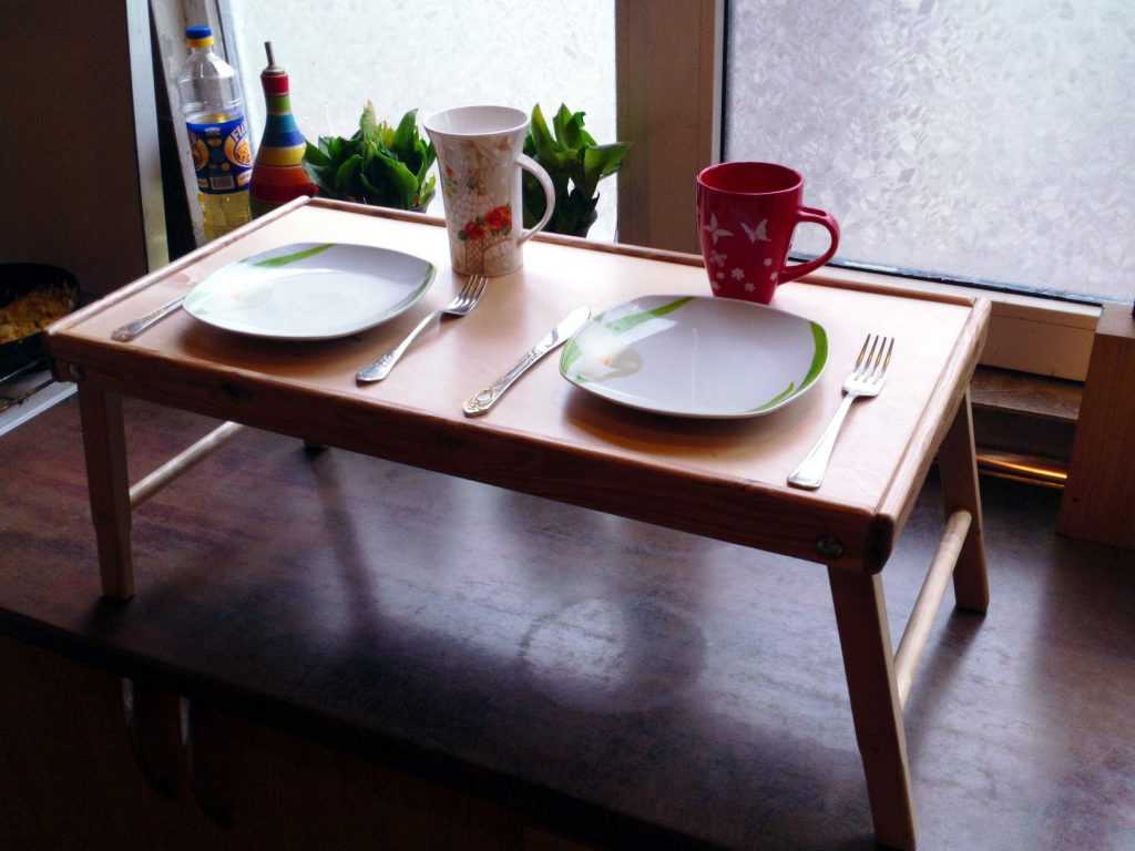 Convenez qu'une table de petit déjeuner est un accessoire très pratique qui devrait être dans chaque maison. Il peut être utilisé pour le travail, la couture ou simplement pour regarder les nouvelles sur un ordinateur portable ou une tablette.Les fabricants produisent une grande variété de modèles, faciles à choisir pour tous les besoins. Si vous le souhaitez, il peut être fabriqué de vos propres mains à partir de matériaux improvisés, l'essentiel est de déterminer la taille.