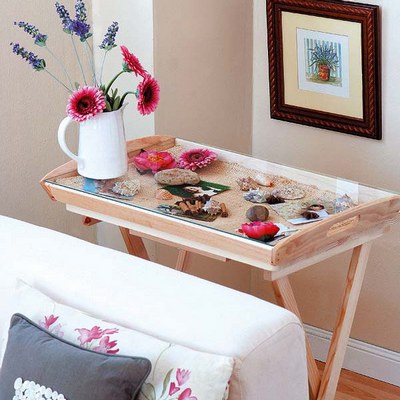 Plat ou à rebords, un tel plateau est utile pour le couloir, le salon ou la chambre. L'essentiel est qu'il soit compact.