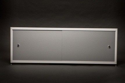 Le fabricant "MetaKam" produit des écrans fiables avec des cadres en PVC et des panneaux en polypropylène cellulaire. La vue de l'écran est très élégante, les modèles Metacam Coupé sont stylisés comme de la glace dans leurs couleurs. La conception a des portes coulissantes à deux ailes, la longueur est de 148 mm et la hauteur peut être ajustée de 55 à 60 cm.peut être lavé en toute sécurité, y compris les produits de nettoyage. Il y a des pieds réglables.