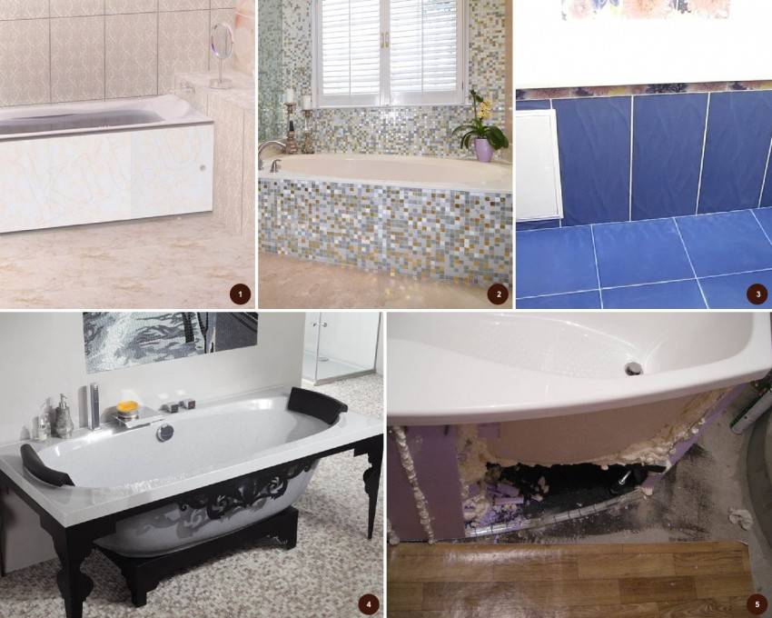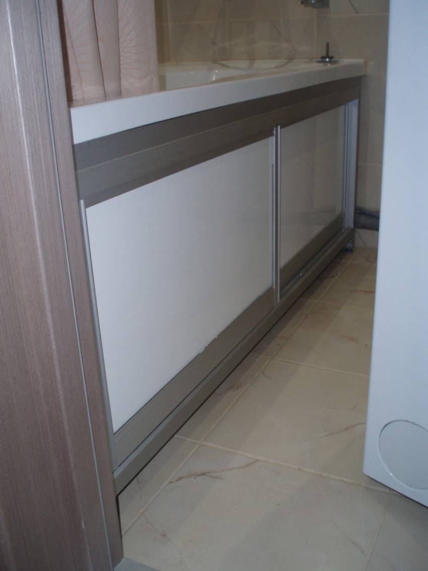 Un bain acrylique moderne est acheté avec des écrans en plastique prêts à l'emploi. Ils sont fabriqués exactement sur mesure, faciles à assembler et à installer. Les propriétaires de vieux acier et fonte sont obligés de les fabriquer de leurs propres mains ou de laisser l'espace ouvert et de contempler les tuyaux d'égout. Fermer ou non la place sous la salle de bain est une question de goût des propriétaires.