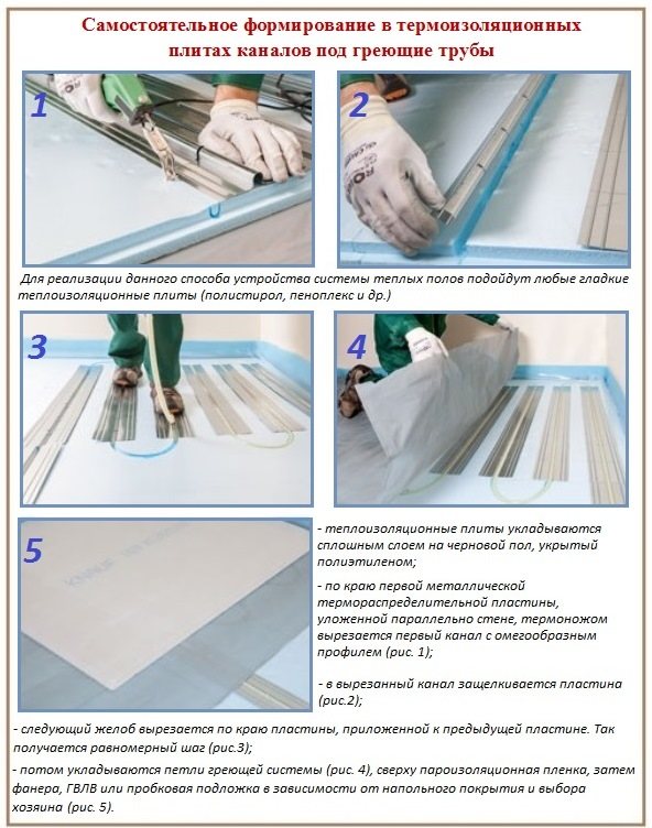 Étape 3. Ensuite, du polystyrène expansé est posé (il doit être dense - environ 100 microns). La pose se fait manuellement, il y a des rainures de montage spéciales le long des bords des plaques, il n'y aura donc aucune difficulté avec cela. Les plaques sont installées bout à bout, aucune fixation supplémentaire n'est nécessaire. Si nécessaire, le matériau est coupé en morceaux souhaités à l'aide d'un couteau conventionnel.