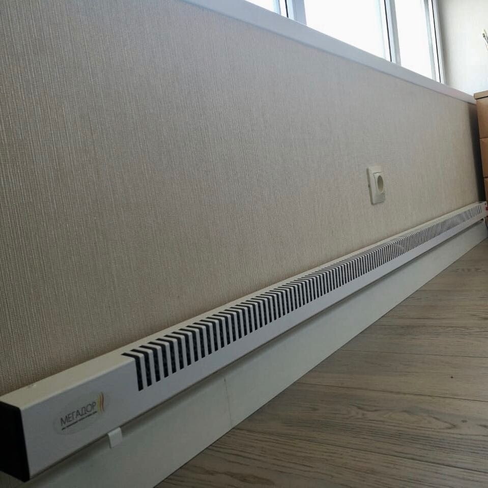 Le convecteur est un appareil de chauffage au design léger et élégant. Monté, en règle générale, sur le mur, moins souvent - au plafond. Cela se fait très simplement: d'abord, un cadre de montage est installé sur le mur avec des boulons, puis un convecteur y est posé. Le principe de fonctionnement du convecteur est simple. L'air froid entre par les ouvertures inférieures du convecteur dans le boîtier. Là, il traverse les parties chauffées de l'élément chauffant électrique.L'air chauffé sort par les ouvertures supérieures de l'appareil. Le thermostat aide à ajuster les paramètres de température souhaités.