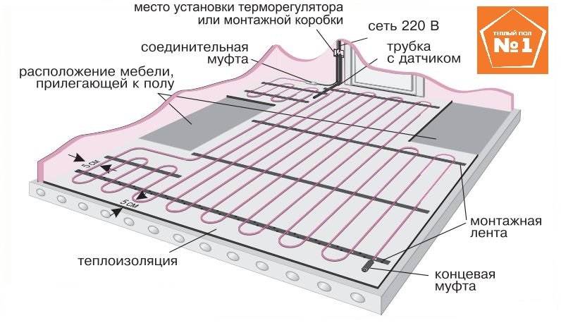 Conseils! La disposition de la pièce dans laquelle il y aura un sol chaud doit être très bien pensée, car un réaménagement supplémentaire peut affecter les performances du système.